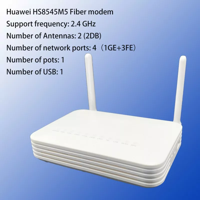 TENKILOMETERS kualitas dhuwur HS8545M5 Single Band XPON WIFI ONU ONT NEW STYLE minangka gateway ngarep high-end ing solusi FTTH. Kanthi nggunakake teknologi GPON, akses ultra-broadband diwenehake kanggo pangguna omah lan SOHO. Huawei HS8545M5 FTTH nduweni kemampuan nerusake kinerja dhuwur kanggo njamin pengalaman sing apik banget karo layanan VoIP, Internet lan video HD. Huawei HS8545M5 FTTH menehi solusi terminal sing sampurna lan kapabilitas dhukungan layanan berorientasi mangsa kanggo panyebaran FTTH.
