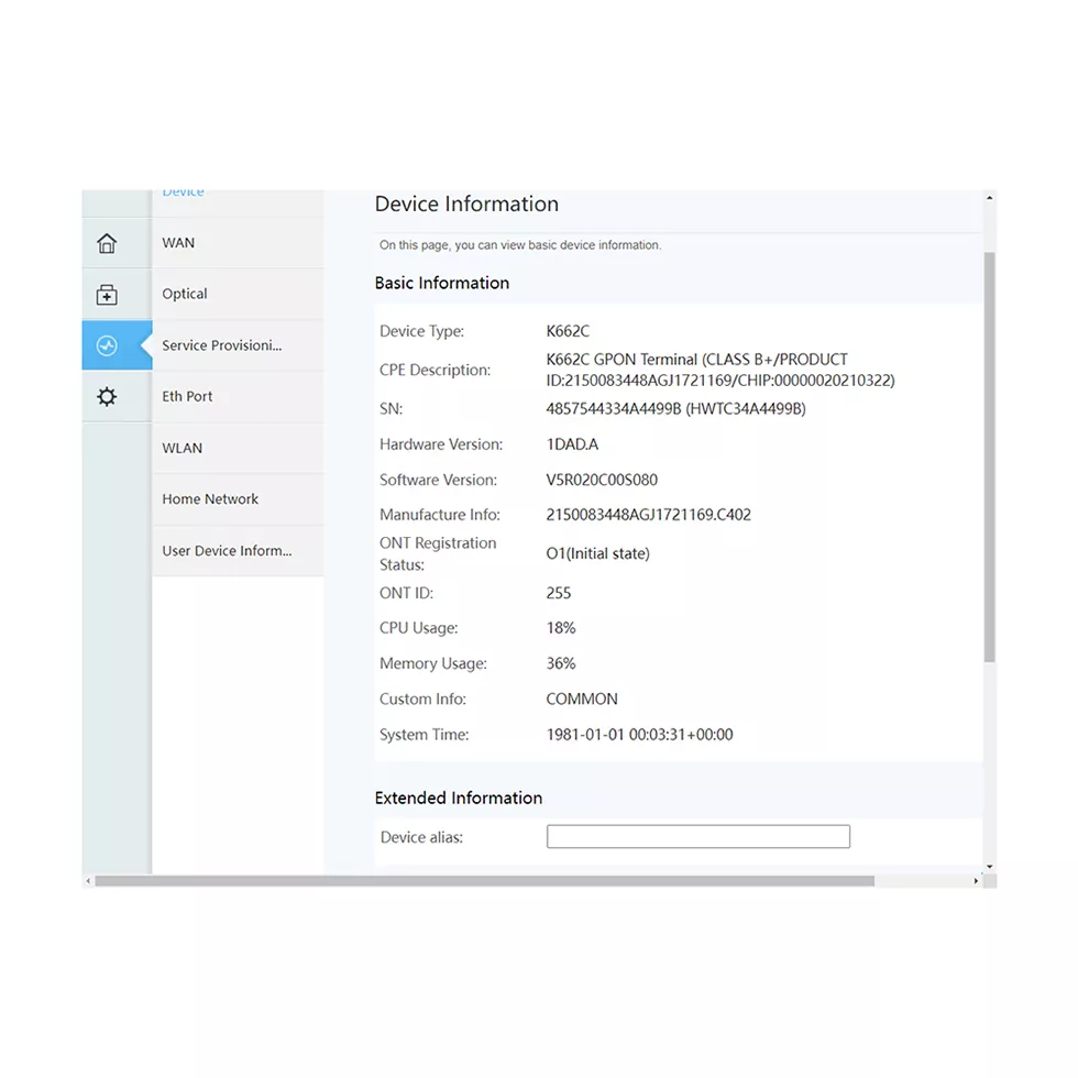 Iki minangka piranti telu-ing-siji kanthi 3 mode kerja. Salah sijine yaiku mode modem optik, liyane yaiku mode router nirkabel, lan liyane yaiku mode jaringan serat optik (setelan rumit, lan sampeyan kudu ngrampungake cangkang lan nganyari program perangkat kukuh. Ora dianjurake kanggo biasa. pangguna kanggo nyoba). Mode bisa diowahi ing item setelan. konfigurasi hardware K662C: CPU punika Hisilicon SD5117P (dual-inti 1.6), memori lampu kilat 128M, memori 256M. Wireless AX yaiku 2 saluran 80MHz, 160MHz, ndhukung jaringan MESH, ndhukung WIFI6, lan kacepetan nirkabel yaiku 3000M.